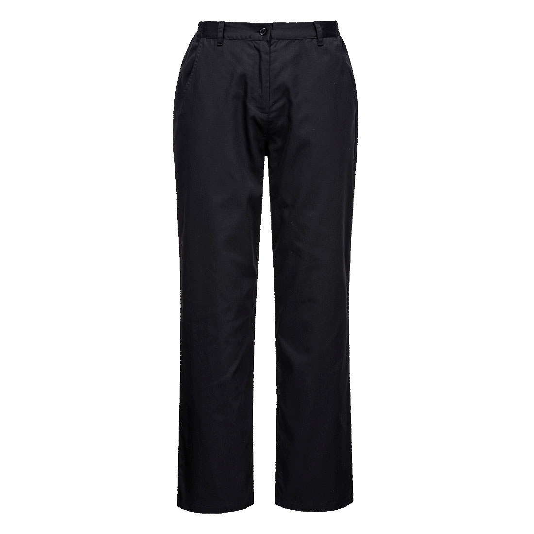 Nämä housut on käytännöllinen ja mukava naisille suunniteltu malli Osittain joustava selkäosa helpottaa liikkumista ja kiinnitys napin sekä vetoketjun avulla. Tämän nykyaikaisen, istuvan mallin ominaisuuksia ovat sivutaskut ja takatasku.