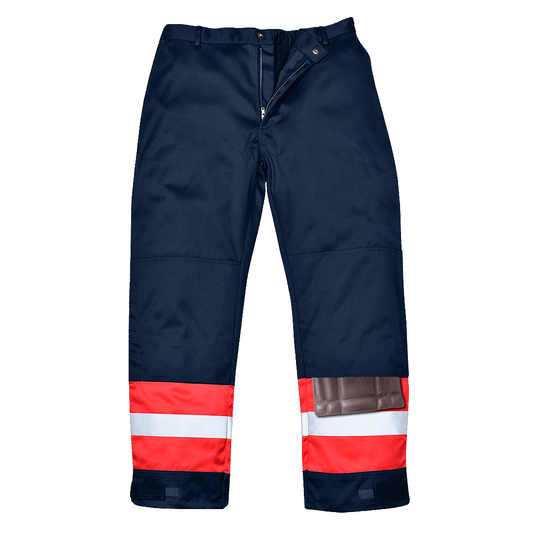Housujen on lahkeissa heijastin nauhat, joissa kaksoistikkaus. Kolmoistikkaukset saumoissa sekä polvityynytaskut, mittanauhatasku ja edessä metallivetoketju.