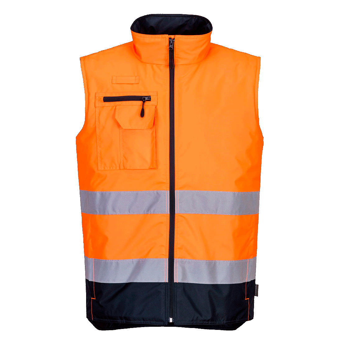 Perinteinen kaksivärinen lämpöliivi. Monitoimiset taskut ml.tilava puhelintasku ja lämmin vuori.