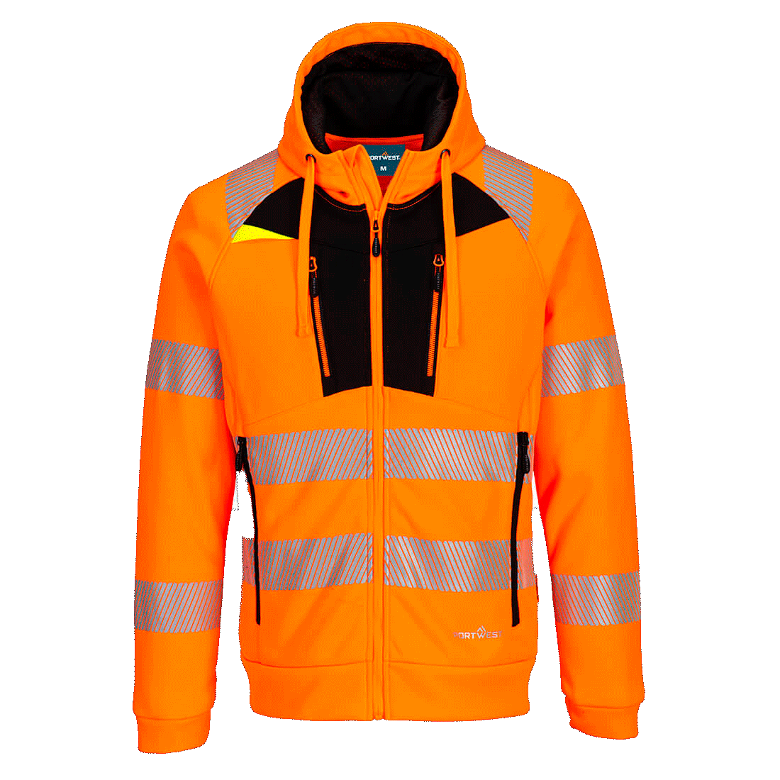 DX4 Hi-Vis -huppari valmistettu teknisestä kankaasta, jossa on sisäpuolinen fleece- vuoripinnoite, joka tarjoaa lisälämpöä. HiVisTex Pro -katkoheijastinteippi, taas mahdollistaa esteettömän liikkumisen. Edessä kaksi vetoketjullista rintataskua sekä sivutaskua tarjoavat runsaasti säilytystilaa. Täysipitkä vetoketjukiinnitys, jossa on kuminen vedin. Huppu in muotoiltavissa ja istuu tiiviisti. Modernin tekninen ratkaisu nykyaikaiselle työntekijälle.,