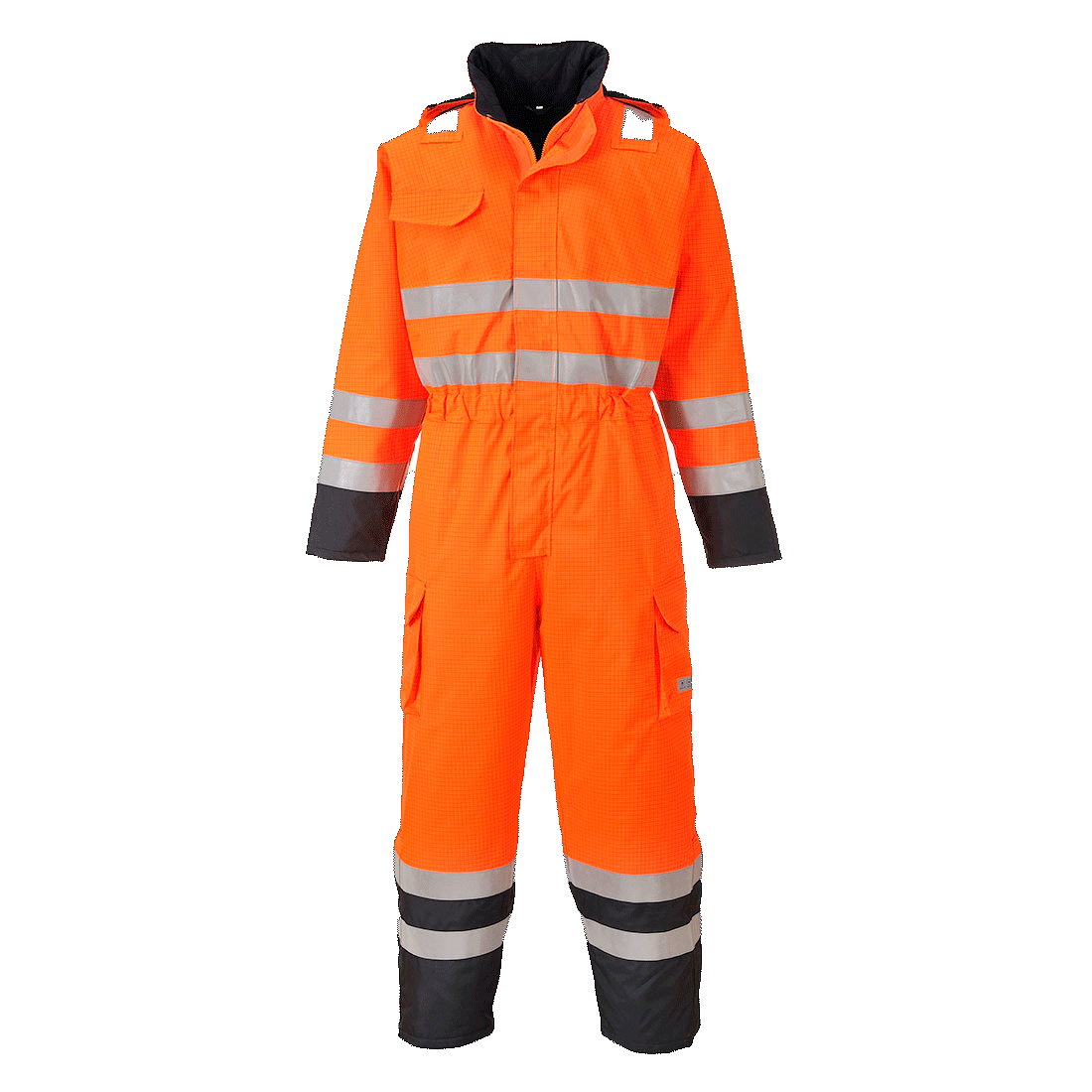 Huomiohaalari, tulensuoja, antistaattinen, vedenpitävä ja hengittävä. Erityisesti petrokemian teollisuuteen.Monipuoliset ominaisuudet,kuten suojaava etulista,jossa erityinen touch and grip-kiinnitys.Lisäksi irrotettava huppu,kaksi isoa taskua,piilotettu puhelintasku,lahkeissa ketjut näin asu on mukava ja monipuolinen.Kaksi reisitaskua, piilotettu puhelintasku ja lahkeessa ketjut.