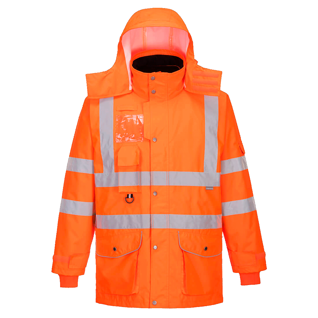 Tämä 7-in-1 takki on vesitiivis ja hengittävä. Korkein En- näkyvyysluokitus. Riittävästi säilytystilaa ja käytännöllisiä yksityiskohtaia, kuten piilohuppu ja fleece-vuorattu kaulus.