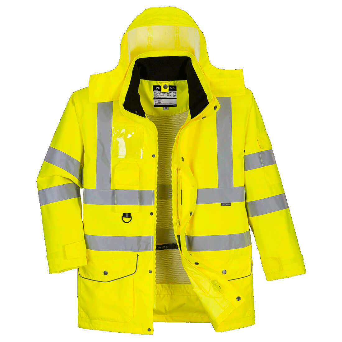 Innovatiivinen 7 in 1 -takki sopii mihin tahansa tilanteeseen. Vesitiivissä ja hengittävässä ,EN-luokitetussa takissa on useita ominaisuuksia, kuten runsaat taskut, piilohuppu ja fleecevuorattu kaulus.