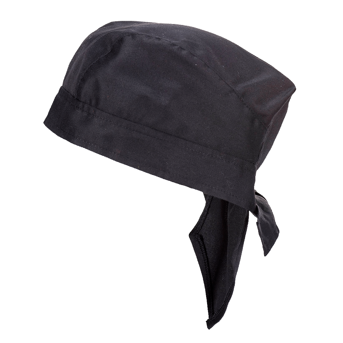 Bandana-mallinen on muodikas ja tyylikäs päähine keittiötyöhön. Mukava ja suojaava päähine erityisesti niskan puolelta.
