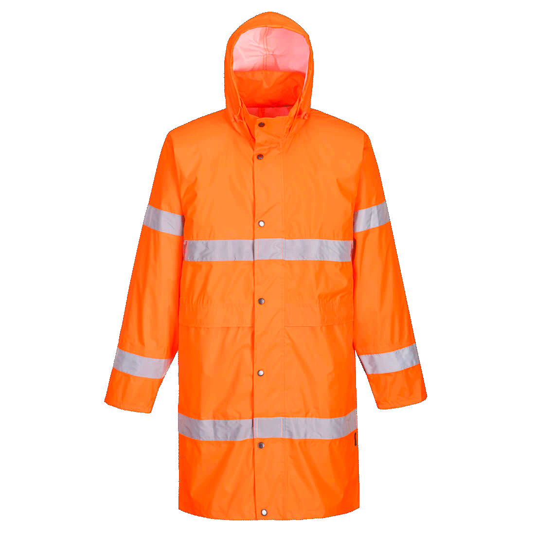 Näkyvyysluokiteltu sadetakki suojaa sateelta ja tuulelta. Takin helmapituus on jopa 100cm. Vetoketjun päällä myskylista, piiloon taitettava huppu, tilavat taskut edessä sekä takana mukavuuden takaava "ilmastointi" läppä parantaa hengittävyyttä.
