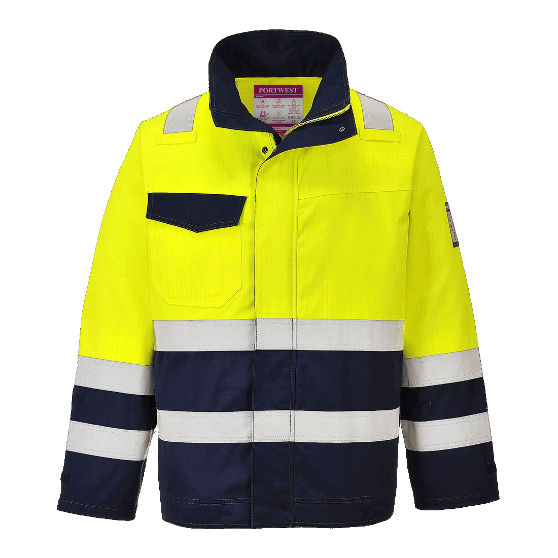 Kaksisävy takki yhdessä heijastusnauheojen kanssa antavat turvallisen näkyvyyden moniss vaaratilanteissa.Malli täyttää vaativat Arc Flash-vaatimukset.