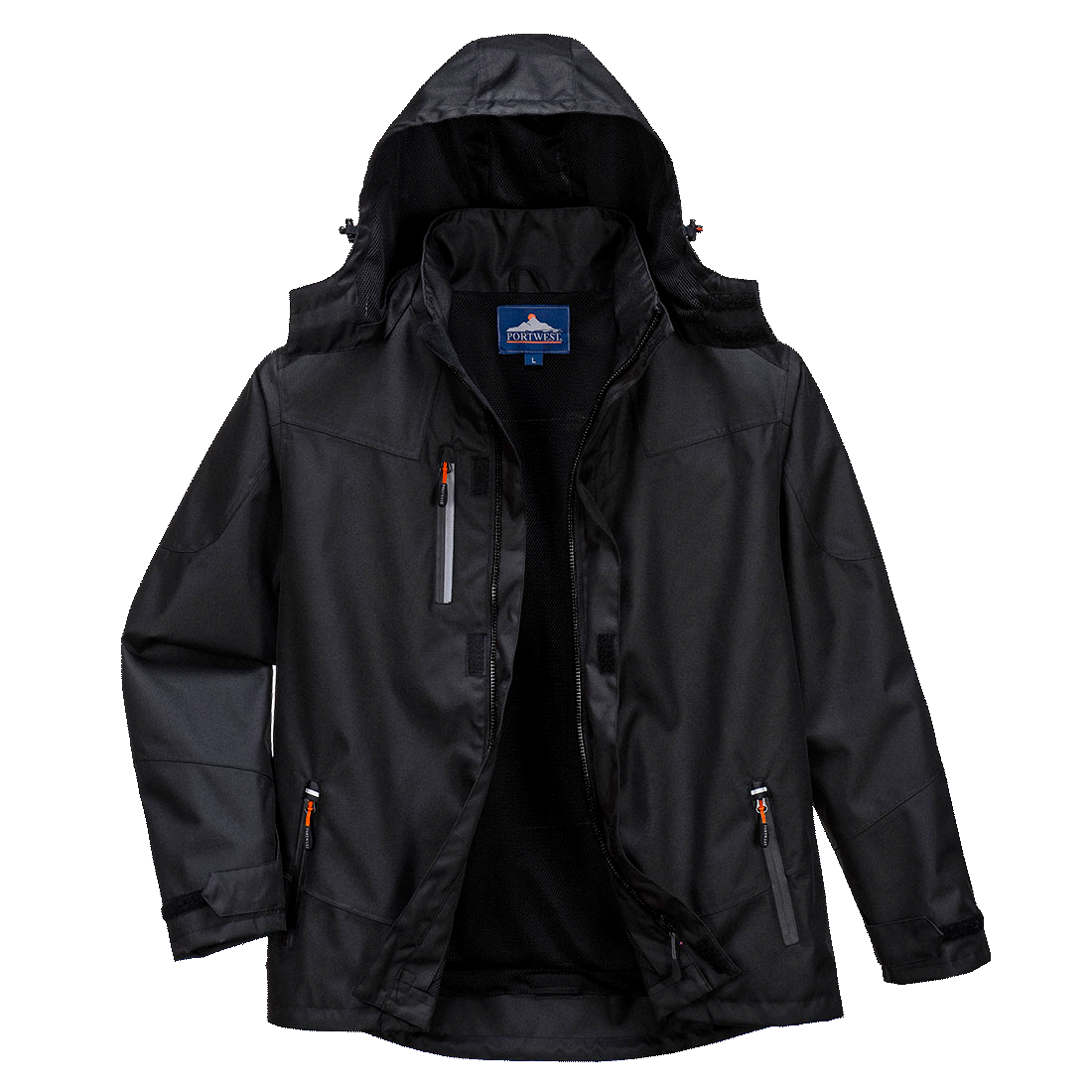 Kuoritakki on veden- ja tuulenpitävä sekä myös hengittävä. Pintamateriaali on erityisen kulutusta kestävä ja verkkomainen vuori lisää ilmavuutta sekä käyttömukaavuutta. Vedenpitävät vetoketjut, istuva leikkaus, käytännöllinen huppu, sekä riittävä määrä säilytystaskuja tekevät tästä Urheilullisesta mallista sopivan vaativaan käyttöön hankalissakin sääolosuhteissa.