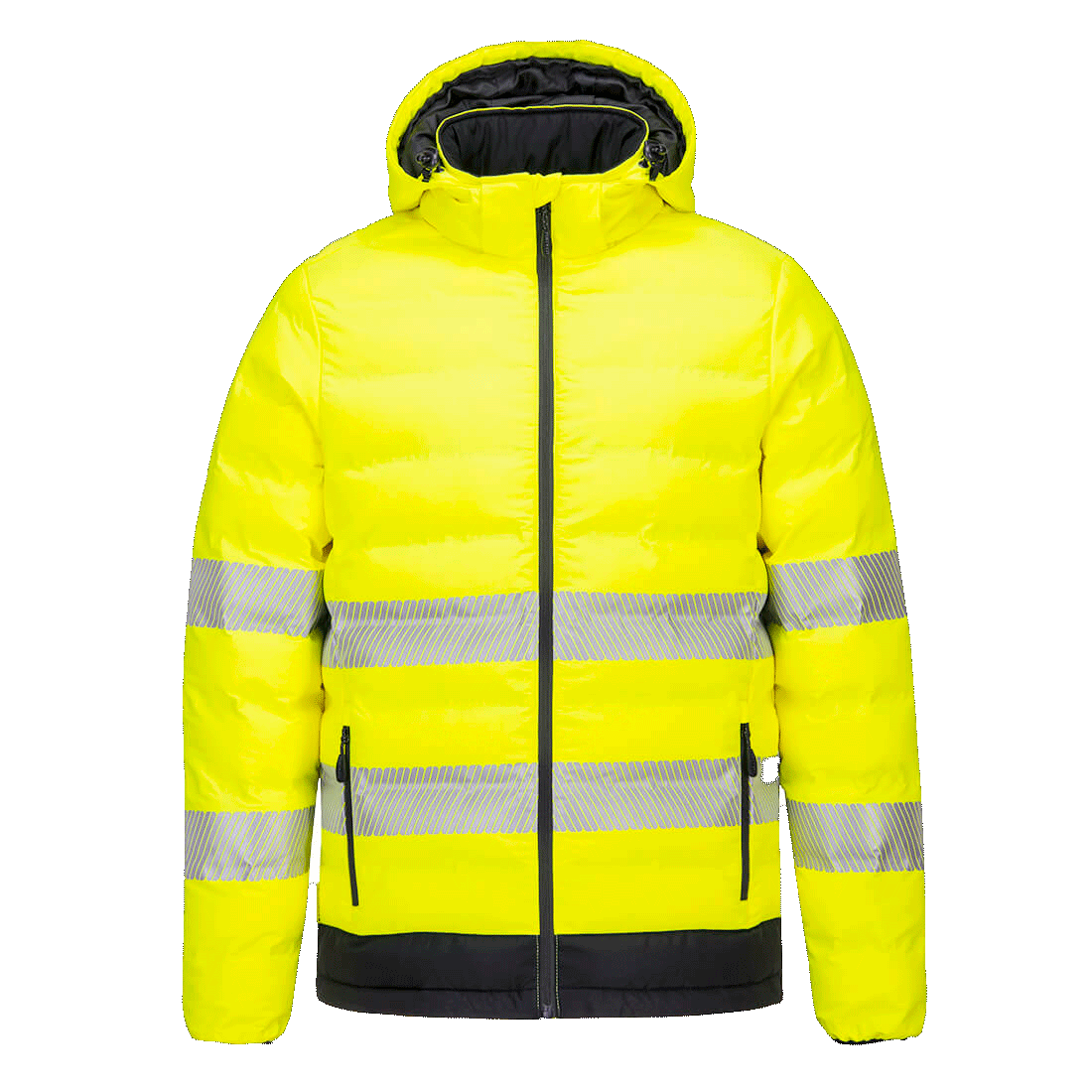 Hi-Vis Ultrasonic lämmitettävä kevyttoppatakki täyttää huomiovaatetuksen standardien korkeimmat vaatimukset Hiilikuituiset lämmityspaneelit on upotettu takin pehmusteisiin ja kytkettynä hohtavat lisälämpöä ja näin parantavat takin käyttömukavuutta kylmissä sääolosuhteissa Innovatinen kuumaprässätty kuiturakenne lisää kankaan vedenkestävyyttä Tämän takin lämmityspaneeleissa on kolme eri tehoasetusta ja lämpötilaa voidaan muuttaa rinnassa olevan napin avulla. Ladattavan akun avulla lämpiävät paneelit hohtavat lämpöä 3-10 tuntia riippuen lämpötilaasetuksista
