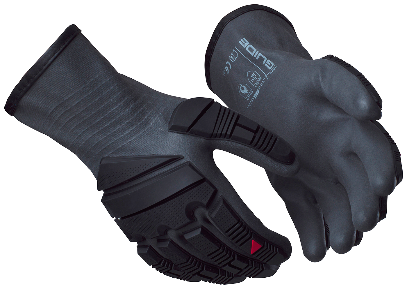 Offshore-käsine vaativiin olosuhteisiin. Kaksinkertainen suojapinnoite nestetiiviistä nitriili/PVC-seoksesta, soveltuu suojaukseen ympäristöissä, joissa esiintyy erilaisia nesteitä. Kämmenselässä iskunvaimennus. Käsine kuuluu O.T.-sarjaan